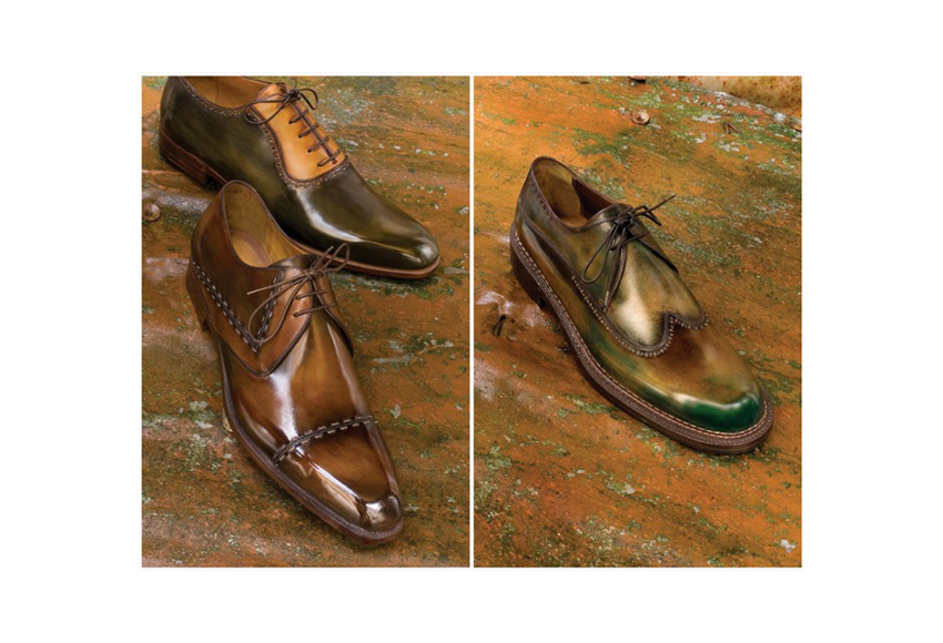 由色彩设计专家手工打造且充满精油质感的Patina色调被赋予了一个个引人入胜的名字:“cocoa”、“autumn leaf”、“smoky gray black”,以及近期推出的“Saint Emilion”,使每双鞋履都独具生命力。
